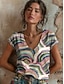 Mujer Blusa Botones Estampado Floral Impresión de mármol Bohemia Vintage Casual Manga Corta Escote en Pico Tops regulares Diario Azul Piscina Rojo Naranja Gris Verano