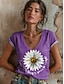 Mujer Camiseta Estampado Floral Graphic Vintage Elegante Clásico Manga Corta Escote en Pico Tops regulares Casual Diario Noche Morado Verde Trébol Verano Primavera