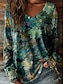 Mujer Camiseta Estampado Floral Graphic Vintage Clásico Casual Manga Larga Escote en Pico Tops regulares Diario Azul Piscina Morado Verde Trébol Primavera Otoño