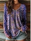 Mujer Camiseta Estampado Floral Graphic Foco Multicolor Vintage Casual Boho Manga Larga Escote en Pico Tops regulares Diario Azul Piscina Verde Oscuro Morado Naranja Charcoat Gris Verano Primavera