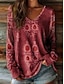 Mujer Camiseta Estampado Floral Graphic Vintage Elegante Clásico Manga Larga Escote en Pico Tops largos Diario Rojo óxido Rojo Morado Verano Primavera