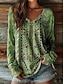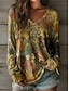 Mujer Camiseta Estampado Floral Graphic Vintage Casual Boho Manga Larga Escote en Pico Tops regulares Diario Caqui Primavera Otoño
