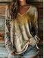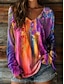 Camiseta de Mujer Talla V Manga Larga Túnica Ombre Floral Geométrica Elegante Vintage Tops Regulares Impresión Diaria Rosa Naranja Gris Claro Verano Primavera