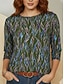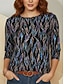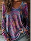 Mujer Camiseta Estampado Floral Graphic Geométrico Vintage Elegante Clásico Manga Larga Cuello Barco Escote Redondo Tops largos Diario Azul Piscina Morado Primavera Otoño