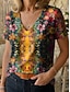 Mujer Camiseta Estampado Floral Graphic Música Vintage Elegante Clásico Manga Corta Escote en Pico Tops regulares Diario Gimnasia Deportes Negro Blanco Arco Iris Verano Primavera