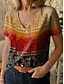 Carnaval Mujer Camiseta Estampado Floral Graphic Vintage Casual Manga Corta Escote en Pico Tops regulares Diario Fin de semana Ropa de vacaciones Vino Verano Primavera