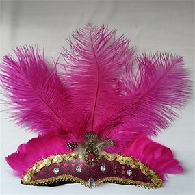 Carnaval 2026 Accesorios de Samba de Carnaval de Río - Tocado de plumas de avestruz rosa brillante para mujeres - Tocado de lentejuelas y pedrería - Traje de showgirl para carnaval Mardi Gras - Traje
