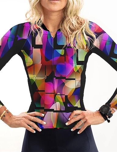 Mujer Maillot de Ciclismo Geométrico Geometría Gracioso Manga Larga Bicicleta Maillot Camiseta con 3 bolsillos traseros MTB Bicicleta Montaña Ciclismo Carretera Secado rápido Bandas Reflectantes