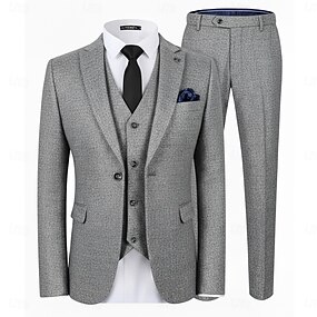 De los hombres Negocio Casual Trajes de tweed Solapa de Pico Negro Gris claro Negocios Formal Color sólido A Medida Juego de 3 piezas Recto 2 botones