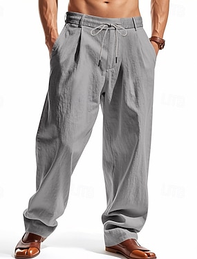 Hombre Pantalones de lino Pantalones Pantalones de verano Pantalones de playa Correa Cintura elástica Pierna recta Plano Comodidad Transpirable Longitud total Casual Diario Festivos Moda Estilo