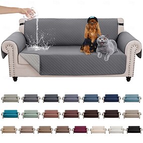 Funda reversible resistente al agua para sofá de 3 cojines, funda apta para mascotas, funda lavable para muebles, protector con correa elástica antideslizante.