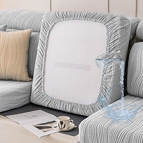 Funda de cojín de sofá resistente al agua, funda de sofá elástica a rayas de jacquard, sillón de dos plazas de 4 o 3 plazas, gris, lisa, suave, duradera, lavable