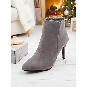 Botines de ante sintético gris para mujer: cierre de cremallera lateral, suela antideslizante, estilo urbano para otoño e invierno.