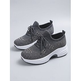 Zapatillas deportivas de plataforma rosa palo con pedrería para mujer: calzado informal para caminar, ideal para festivales de música, salidas casuales y estilo urbano.