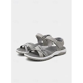 Sandalias cómodas con tiras cruzadas plateadas para mujer: suela suave y acolchada, zapatos casuales ajustables para caminar, ir de compras, viajar, vacaciones y uso diario.