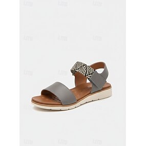 Sandalias cómodas de piel sintética cortadas a láser para mujer: zapatos casuales con cinta mágica para uso diario