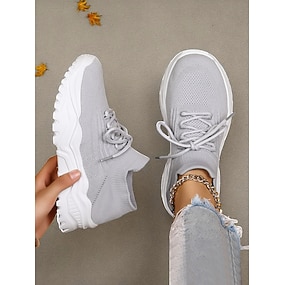 Zapatillas Flyknit grises para mujer: zapatos cómodos con cordones para uso diario, caminatas y salidas informales.