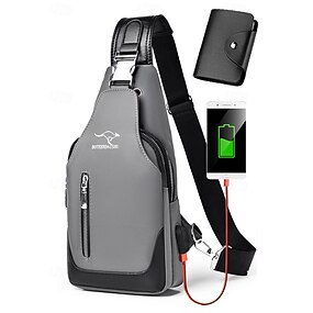 Bolso bandolera de tela Oxford impermeable para hombre con puerto de carga USB, multiusos, disponible en varios colores, perfecto para uso informal y al aire libre.