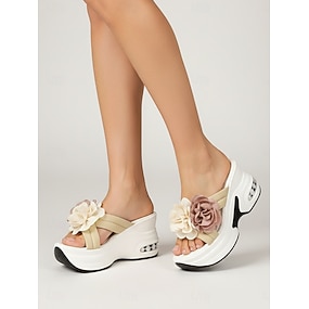 Elegantes sandalias de cuña con recortes florales para mujer: zapatos de verano cómodos con flores decorativas, ideales para uso diario o fiestas en el jardín.
