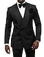 De los hombres Boda Fiesta Trajes Solapa Redonda Negro Azul Real Moda Negocios Color sólido Estándar Juego de 2 piezas Recto 1 botón