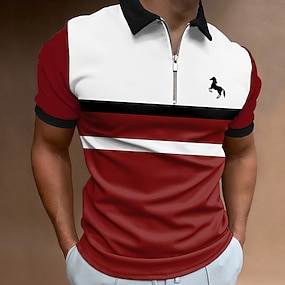 Hombre A Rayas Camisetas polo con cremallera Camiseta de golf Manga Corta Camisas de polo Camisas con cuello Informal de negocios Para trabajo Ropa formal Ropa de festival Impresión 3D Polo con