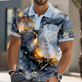Hombre Mármol Polo Manga Corta Camisas de polo Camisas con cuello Casual Ropa Deportiva Ropa Cotidiana Impresión 3D Botones Verano Azul Piscina Morado Gris
