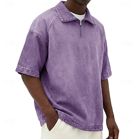 Hombre Camisetas polo Camisa desteñida con ácido Casual Festivos Cuello Vuelto Cremallera de un cuarto Manga Corta Moda Básico Color sólido Cremallera Estilo retro Verano Primavera Azul Piscina De