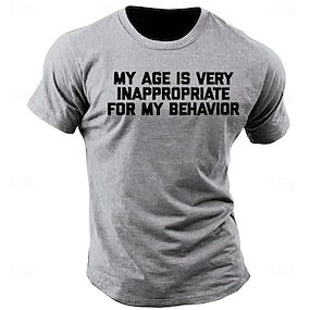Camiseta de hombre con impresión gráfica divertida 'Mi edad es muy inapropiada para mi comportamiento' parte superior humorística de estilo de vida de manga corta