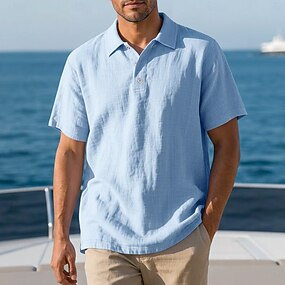 Hombre Camisa de lino Camisetas polo Casual Vacaciones Clásico Manga Corta Moda Color sólido Plano Botones Verano Primavera Ajuste regular Azul Piscina Negro Blanco Azul Marino Verde Trébol Caqui