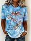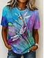 Mujer Camiseta Estampado Libélula Moda Moderno Casual Manga Corta Escote en Pico Tops regulares Diario Fin de semana Azul Piscina Rojo Gris Verano