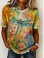 Mujer Camiseta Estampado Floral Graphic Libélula Vintage Moda Elegante Manga Corta Cuello Barco Tops regulares Casual Diario Fin de semana Azul Piscina Amarillo Morado Verano Primavera