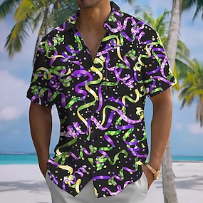 Mardi Gras Hombre Carnaval Cinta Camisa Abotonar la camisa Manga Corta Moda informal Vacaciones Regalo Festivos Verano Primavera Cuello Vuelto camisas con cuello Un bolsillo delantero Morado