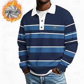 Hombre Tiras horizontales Camisetas polo Camisas Themmal Manga Larga Camisas de polo Diseño Casual Ropa Deportiva Festivos Ropa Cotidiana Impresión 3D Otoño Invierno Azul Piscina Amarillo Verde Trébol