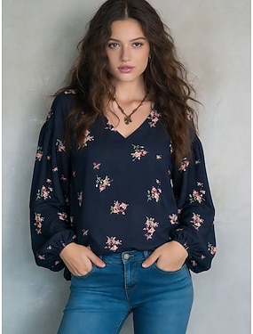 Mujer Camisa camisa boho Blusa Estampado Graphic Vintage Elegante Clásico Manga Larga Escote en Pico Tops regulares Diario Festivos Noche Negro Rosa Verano Primavera