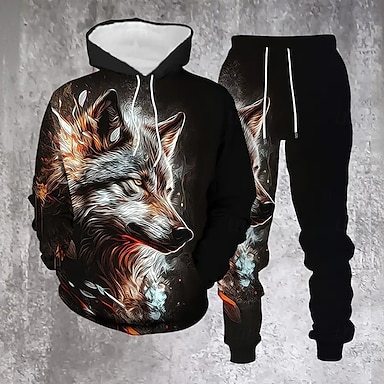 Hombre Animal Lobo 2 piezas Conjuntos de sudaderas 3D Chándal Sudadera con capucha Manga Larga Pantalones largos Con Capucha Casual / Diario Ropa Deportiva Ropa Cotidiana Impresión 3D Primavera Otoño