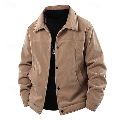 Hombre Chaqueta ligera Chaqueta de Pana Chaqueta casual Vacaciones Diario Mantiene abrigado Bolsillo Primavera Otoño Plano Moda Clásico Diseño Regular Negro Caqui Verde Ejército Beige Chaquetas