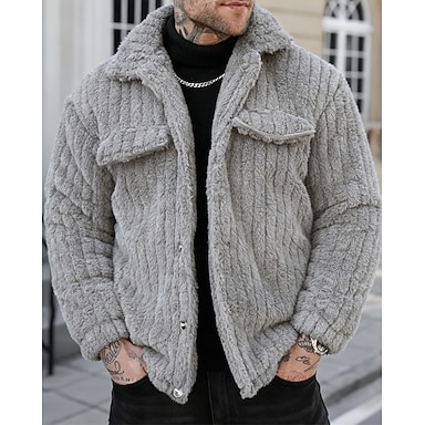 Hombre Chaqueta de Invierno Abrigo de peluche Chaqueta casual Vacaciones Diario Mantiene abrigado Bolsillo Vellón Otoño invierno Plano Moda Ropa de calle Escote Chino Regular Negro Azul Marino Marrón