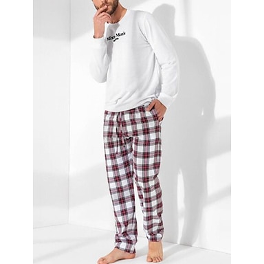 Hombre Ropa de salón Pijama Conjunto pijama Top y pantalón de pijama 2 Piezas Plaid Estampados Elegante Casual Confort Hogar Diario Cama Poliéster Comodidad Suave Cuello Barco Manga Larga Camiseta