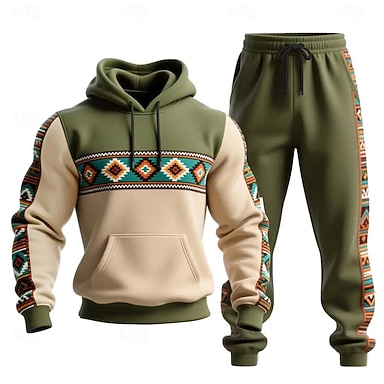 Hombre Tribal 2 piezas Conjuntos de sudaderas 3D Chándal Sudadera con capucha Manga Larga Pantalones largos Con Capucha Estilo Étnico Casual / Diario Ropa Deportiva Impresión 3D Primavera Otoño