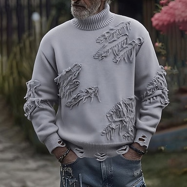 Hombre Suéter de punto Estriado Tejer Tops regulares De Punto rasgado Plano Cuello Alto Moda Básico Vacaciones Ropa Cotidiana Ropa Otoño Invierno Negro Beige M L XL