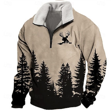 Hombre bosque Venados Sudadera Sudadera con un cuarto de cremallera Manga Larga Camisa de entrenamiento Escote Chino Cremallera de un cuarto Casual retro de la vendimia Impresión 3D Vacaciones Noche