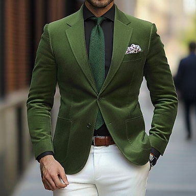 Hombre Chaqueta americana Cuello de muesca Moda Ligeras Casual Color sólido Blazer Negro Verde Claro Rosa A Medida Dos botones de un solo pecho