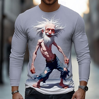 Hombre 3D Old Man Camiseta Manga Larga Camiseta Impresión 3D Cuello Barco Camisa Moda Básico Calle Casual Diario Marrón claro Caqui Gris Oscuro Verano Primavera Ropa S M L XL XXL XXXL