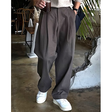 Hombre pantalones de traje Pantalones Chinos pantalones Pantalones plisados Botones Bolsillo Pierna recta Plano Comodidad Formal Fiesta Trabajo Moda Estilo clásico Negro Gris Oscuro Microelástico