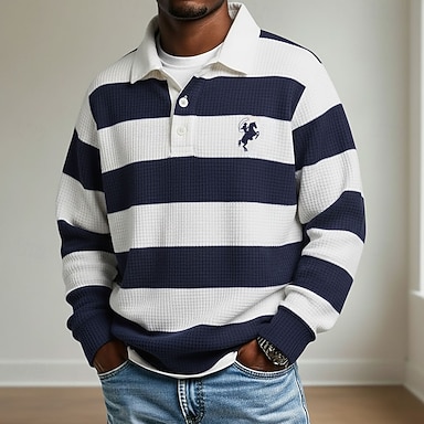Hombre Tiras horizontales Polo Polo de rugby Camisetas polo de rugby Manga Larga Camisas de polo Diseño Ropa deportiva Casual Escuela Ropa Deportiva Ropa Cotidiana Impresión 3D Primavera Otoño