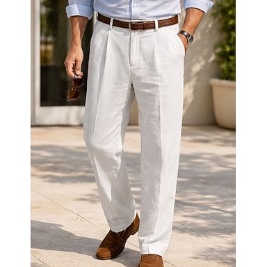 Hombre Pantalones de lino Pantalones pantalones de traje Pantalones de verano Plisado Pierna recta Plano Comodidad Transpirable Longitud total Casual Diario Negocio Moda Ropa de calle Azul Piscina