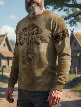 Hombre Sudadera Azul Piscina Marrón Verde Trébol Caqui Cuello Barco Árbol de la vida Yggdrasil Nudo celta Estampado Casual Diario Ropa de calle Vintage Vikingo Otoño Invierno Ropa Sudaderas con