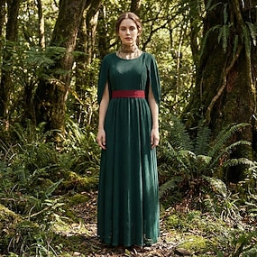 Retro Antiguo Medieval Renacimiento Vestidos Conjunto de accesorios Vikingo élfico Disfraz Mujer Víspera de Todos los Santos Carnaval Mascarada LARP Adulto Vestido Más Accesorios Pendientes