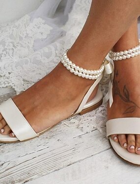 Zapatos planos con tiras en el tobillo y perlas blancas para mujer: elegantes zapatos de novia para bodas y ocasiones especiales