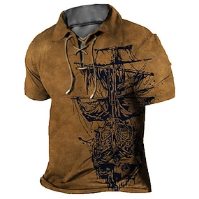 Hombre Estampados Cosecha Bote POLO Camiseta de golf Manga Corta Camisa Cuello Vuelto Exterior Calle Azul cielo Azul Piscina Marrón Caqui Gris Correa Estampado Ropa Deportes Moda Ropa de calle Design